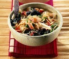1 л грибного бульона, 300 г свеклы, 200 г моркови, 200 г свежей белокочанной капусты, 200 г кореньев (сельдерея или петрушки) и лука, 100 г помидоров, 50 г чернослива, по 1 ст.л. уксуса и сахара.