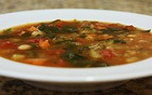 300 г стручковой фасоли, 1 стак. консервированной кукурузы, 2 болгарских перца (цветных), 1 стебель лука-порея, 1 луковица, 3 ст.л. растительного масла, 1 ст.л. томатной пасты, зелень, тимьян, соль, перец.