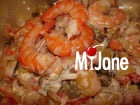 1 кг замороженных королевских креветок, 2 свежих помидора, 1 красная луковица, 4 белых луковицы, 500 г замороженных грибов, 1 ст.л. постного майонеза, растительное масло.