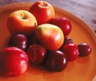 3-4 яблока, 10-15 слив (или 1 стакан вишен), 1 ч. л. картофельной муки, 1/2 стакана сахара, 1 л воды.