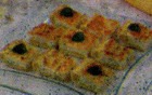 На 6 зайцев: 1 упаковка готового дрожжевого слоеного теста, 25 г масла или маргарина, 1 ст. ложка сахара, 12 изюминок.