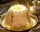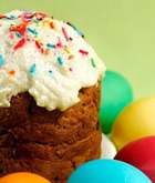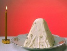 600 г творога, 500 мл сливок (33-35%), 1 стак. сахара, 15 г ванилина, изюм, цукаты.
