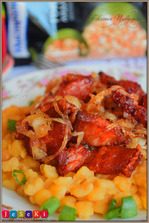 В этом блюде сладость тыквы оттеняется необычным довольно острым соусом. Кроме того, очень интересно сочетание хрустящих орешков с мягкой шелковистостью тыквы.