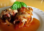 Этот рецепт попался мне в книжке об оливковом масле, оригинальное название "Auberginen-Cannelloni" менять не стала, хотя это, скорее, рулетики из баклажанов. Хороши и в горячем виде, и как холодная закуска.