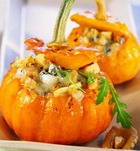 Тыква целая, рис, изюм, ванильный сахар, корица, шафран, грецкие орехи, сливочное масло.