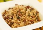 1 стакан риса, 100 г грибов, 1 банка консервированной красной фасоли, 100 г замороженной зеленой стручковой фасоли.