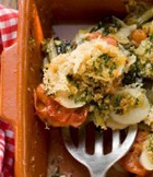 Картофель, запеченный с яйцами и помидорами