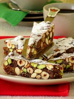 Панфорте - традиционная итальянская сладость, которая готовится из большого количества орехов и сухофруктов. Считается, что этот десерт возник в тосканском городе Сиена в 13 веке. Буквально слово panforte значит "крепкий хлеб", имеется в виду крепкий от большого количества добавляемых в него специй. Также раньше его называли panpepato, что значит "перченый хлеб", потому что в него добавлялось много перца. Документы, датируемые 1205 г, говорят о том, что таким хлебом платили церковную десятину местным монастырям. Сейчас же панфорте - один из наиболее популярных итальянских десертов. Подается после еды с кофе или десертным вином. По вкусу напоминает мягкий грильяж.