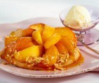 4 крупных яблока, 2 ст. л. растительного масла, ванильное мороженое, 100 г сахара, 1/2 стакана воды.