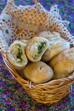 В оригинальном рецепте эти булочки назывались Sonntagsbroetchen (Воскресные булочки) и готовились без начинки. Но у булочек столь интересная формовка, что грех было бы не воспользоваться этим и не начинить их. Вот так и получились эти булочки - очень вкусные и быстрые в приготовлении. Они, в отличие от предыдущих, будут идеальны к завтраку, поскольку замораживаются уже наполовину испеченными, а в духовку отправляются еще замороженными. Ровно 20 минут - и на столе вкусный завтрак!