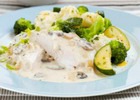 1,5 стакана мясного бульона, 5 шампиньонов, 1 стакан сметаны, 200 г цветной капусты, 1 ст. л. муки.
