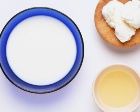 творог нежирный (0,6%) - 2 ст. ложка, сметана - 1 ст. ложка, йогурт - 1 ст. ложка, молоко - 1 ст. ложка, сок лимонный - 1 ст. ложка, соль - по вкусу.