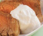 1,5 стакана тертого хрена, 3 стакана сметаны, 1,5 ч. л. сахарного песка и соль по вкусу.