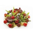 микс из салатных листьев «Мулен Руж», 2 груши конференс, 100 г голубого сыра Рокфор, 120 г свежей малины, оливковое и сливочное масло, тростниковый сахар.