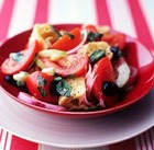 500 г белого хлеба, 6 помидоров, 3 шт. сельдерея, петрушка, 2 красные луковицы, 10-12 шт. маслин без косточек, 4 ст.л. оливкового масла, 2 ст.л. винного уксуса, соль, перец черный молотый по вкусу.