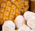 1 банка консервированных ананасов, 200-300 г твердого сыра, 4-5 яиц, 1 долька чеснока.