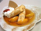 Порежьте персики (лучше консервированные), груши, яблоки и бананы на мелкие кусочки, добавьте некрупные виноградины.