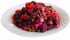 Отварите по две моркови, свеклы и картофелины, порежьте мелкими кубиками.
