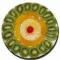 Упаковка бисквитных коржей, сливки 33% жирности, 3 ст.л. сахара, фрукты (дольки апельсинов, киви, ананасов, персиков) Сливки взбивать до тех пор, пока они не превратятся в густую, крепкую массу, но не превратятся в масло. В середине процесса добавить сахар, можно сахарную пудру. Коржи пропитать сладкой водой с ромом или коньяком (1:1). Каждый корж смазать сливками, обмазать его сверху и по краям. Украсить шоколадной стружкой, очищенными фруктами. Дать пропитаться в холодном месте 4-5 часов.