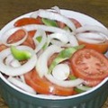 1 кг болгарского перца, 1 кг моркови, 1 кг лука, 2 кг помидоров, 300 г растительного масла, 300 г сахара, 100 г 9%-ного уксуса, 2 ст. ложки соли. Перец нарезать соломкой, лук – кольцами, помидоры дольками, морковь натереть на крупной терке, все перемешать с маслом, сахаром, уксусом и солью. Кипятить 15-20 минут. Разложить стерильные банки закатать.