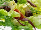 Салат зеленый, разных сортов, перебирается, чтобы не испорченных листьев, споласкивается водой и обсушивается полотенцем. Целыми листьями, или разрезанный куски, кладется в салатницу и обливается, смотря по вкусу: одним уксусом, прованским маслом и наконец — горчичным соусом. В домашних обедах последний способ более распространен. Приготовляется горчичный соус так: 200-250 г салата, 2 чайные ложки готовой горчицы растереть двумя столовыми ложками сахара и чайной ложкой прованского масла (кто не любит прованского масла, может заменить масло столовой ложкой сметаны и одним желтком, крутым или сырым), соединить протертую смесь 1/2 стаканом уксуса не особенно крепкого, размешать и залить им салат. В данном случае каждый листок салата нужно разрезать пополам. Можно положить в салат мелко порезанный белок от яйца.