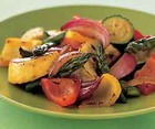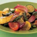 15 мл подсолнечного масла 30 мл соевого соуса 1 ч. л. хереса 2,5 см корня имбиря очищенный и мелко потертый 2 среднего размера моркови, порезать на тонкие полоски 100 г шляпок грибов, порезанные 50 г стручков фасоли 1 красный перец, прочищенный и тонко порезанный 4 луковых кольца 100 г консервированных водных каштанов, порезанные 1/4 китайских листьев, тонко порезанных Поместите масло, соевый соус, херес, имбирь, чеснок и морковь в большую кастрюлю, хорошо помешайте. Закройте кастрюлю и готовьте на высокой мощности в течение 5-6 минут, один раз помешайте. Добавьте шляпки грибов, фасоль, красный перец, весенний лук, водянистые каштаны и китайские листья. Хорошо помешайте. Готовьте на высокой мощности в течение 6-7 минут до тех пор, пока овощи не станут мягкими. Помешайте 2-3 раза во время приготовления. Жареные овощи обычно подаются с мясом или рыбой. Для микроволновки мощностью 600-650 Вт.