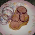 бекон - 200 г масло сливочное - 50 г лук репчатый - 1 шт. хлеб - 400 г Хлеб нарезать ломтиками, намазать маслом, покрыть тонкими ломтиками бекона и запечь в жарком духовом шкафу. Подать с кольцами лука (по желанию).