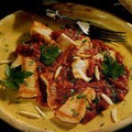 750 г шницелей из индейки 1 луковица 2 ст. ложки топленого масла 2 зубчика чеснока 2 ст. ложки порошка карри 500 г помидоров, нарезанных кубиками 1 пучок петрушки 3 ст. ложки молотого миндаля перец, соль 1/4 л куриного бульона 1/2 ч. ложки молотого тмина сок 1/2 лимона Мясо нарезать полосками, хорошенько обжарить в топленом масле. Поставить в теплое место. Лук порубить и пассеровать в оставшемся на сковороде жире. Добавить измельченный чеснок. Приправить солью, перцем, карри и тмином. Добавить кубики помидоров и куриный бульон. Варить 10 мин. Петрушку мелко порубить. Половину петрушки вместе с мясом индейки, лимонным соком и 2 ст. ложками миндаля добавить к помидорам. Прокипятить в течение 5 мин. Посыпать петрушкой и миндалем.