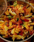 4 ст. ложки оливкового масла 2 пакета замороженной овощной смеси (по 450 г) 250 г макарон 2 зубчика чеснока свежесмолотый черный перец 100 г сыра гауда соль немного купыря Разогреть в сковороде оливковое масло. Положить неразмороженную овощную смесь и потушить с 100 мл воды, периодически помешивая. Макароны отварить в подсоленной воде. Чеснок очистить, пропустить через пресс, смешать с овощами. Приправить. Макароны откинуть на дуршлаг, перемешать с овощной смесью. Сыр натереть на терке, посыпать им макаронно-овощную смесь. Купырь помыть, обсушить, отделить листочки, украсить ими блюдо.