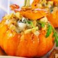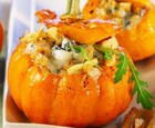 1 тыква 1 кочан капусты 3 моркови луковица зелень Из тыквы убрать мякоть ложкой, чтобы остались только тонкие стенки. Измельченную капусту потушить с тертой морковкой, луком и измельченным зубчиком чеснока. Положить начинку в тыкву и поставить в духовку на 30-40 минут.