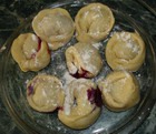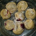 На готовые формочки (3-4 штуки, т.к. выделяется сок) разложить ягоды и посыпать сверху сахарным песком. Слепить вареники любой формы и убрать в морозильную камеру.