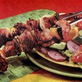 1,5-2 кг баранины 4 помидора 2 болгарских перца Для маринада: 1 стакан столового уксуса (3%) 3 луковицы соль и черный молотый перец - по вкусу 1 ч. ложка аджики Баранину порезать кусочками, сложить в маринад и вымочить в течение 4-5 часов. Для маринада смешать уксус с солью, перцем, аджикой, луком и лимоном, порезанными кольцами. После того как мясо замаринуется, нанизать его на шампуры вперемежку с кружками помидоров, болгарского перца, лимона и лука. Жарить над прогоревшими углями. На угли для аромата можно бросить несколько зернышек укропа или кардамона.