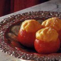 3-4 крупных апельсина 2 стаканчика готового ванильного пудинга 1 стакан жирных сливок для взбивания С апельсинов срезать верхушки. Осторожно вынуть всю мякоть и нарезать ее маленькими кусочками. Наполнить апельсины до половины нарезанной мякотью, залить ванильным пудингом и украсить взбитыми сливками. Посыпать сахарной пудрой.
