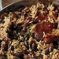 250 г консервированной красной фасоли копченая рулька 1 помидор зелень для украшения 1 острый перчик чили 1 луковица 1 зубчик чеснока 300 г длиннозерного риса Помидоры и лук мелко порезать, перец чили очистить от семян и покрошить. В скороварку положить рульку, залить водой, положить помидор, зелень, чили, лук, выдавленный чеснок, рис и фасоль. Посолить, положить специи и закрыть скороварку. Готовить минут 15-20. Остудить скороварку под струей холодной воды. В готовом блюде срезать с косточки мясо и подавать с рисом и фасолью. Также можно взять сухую фасоль и, не замачивая, приготовить ее в микроволновке: сложить фасоль в миску, залить кипятком, накрыть пленкой, проткнуть пленку вилкой и поставить в печь на 15 минут.