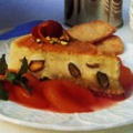 Для теста: 150 г муки, 1/3 ч. ложки соли, 90 г маргарина, полстакана воды, 100 г сахара. Для начинки: 300 г творога, 100 г сметаны, 80 г сахара, 3 яйца, 100 г фисташек. Насыпать муку в большую тарелку так, чтобы получилась горка. Сделать в ней ямку и вылить туда растертый с растопленным маргарином сахар. Постепенно добавляя воду, замесить тесто. Выложить его в смазанную маслом форму и поставить в разогретую духовку на 5-10 минут. Творог, сметану, сахар, яйца смешать до получения однородной массы, добавить фисташки. Вынуть из духовки полуприготовленное тесто, и, выложив на него творожную массу, выпекать еще 30 минут.