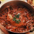 1 курица (весом около 1,2 кг) 3 помидора 4 луковицы 200 г шпика 200 г оливок без косточек 4 зубчика чеснока 4 ст. ложки оливкового масла лавровый лист соль Разрезать курицу на большие куски, обмазать оливковым маслом, посолить и обжарить на сковороде до появления золотистой корочки. Нарезать кубиками лук, шпик, чеснок и помидоры. Положить все на сковороду с курицей, а через 5 минут добавить оливки и лавровый лист. Тушить на медленном огне в течение часа, перемешивая и понемногу добавляя воду для образования соуса. Курицу подавать на блюде, полив ее полученным соусом.