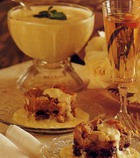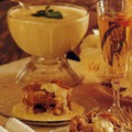 2,5 стакана молока 2 ст. ложки сливочного масла 2 крупных яйца 1/3 стакана сахара 1/4 ч. ложки соли 1 пакетик ванильного сахара 2 стакана черствого белого хлеба, нарезанного кубиками 1/2 стакана изюма 1/4 ч. ложки молотой корицы для соуса 1,5 стакана молока 1/2 стакана сахара 2 желтка 1/2 ч. ложки ванили 10 г муки Теплое молоко смешать с растопленным маслом. В миске взбить яйца с сахаром, добавить соль и ваниль. Положить нарезанный кубиками хлеб, изюм и корицу. Смешать с молоком. Полученную смесь переложить в смазанную форму для выпечки. Поставить в противень с горячей водой и запекать пудинг до готовности. Для соуса: сахар и сырые желтки растереть до светлой смеси. Всыпать муку, добавить ваниль. Развести смесь горячим молоком, довести до кипения. Когда соус загустеет, снять с огня. Процедить и подавать к пудингу. Охлажденный пудинг нарезать звездочками, украсить взбитыми сливками, отдельно подать соус.