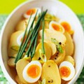 500 г картофеля 1 луковица 2 ст. ложки горчицы 2 ст. ложки масла 1 чайная ложка уксуса соль, перец Отваренный в "мундире" картофель охладить, очистить, нарезать ломтиками. Добавить нарезанный репчатый лук, соль, перец, горчицу разбавить растительным маслом, уксусом, полить салат, украсить его перьями зеленого лука, крутым яйцом, листиками петрушки. Салат должен быть готов за 30 минут до подачи. Рекомендуется предложить его к сельди.