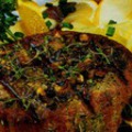 0,5 кг говяжьей вырезки 1 ч. ложка соли 0,25 ч. ложки свежемолотого черного перца 1 измельченный зубчик чеснока 1 ч. ложка сушеного тимьяна 0,25 стакана апельсинового сока 3 ст. ложки растительного масла Для соуса: 1,5 стакана красного сухого вина 1 тонко нарезанный апельсин 1 тонко нарезанный лимон 1 тонко нарезанное яблоко 1 мелко порезанный пучок зеленого лука 100 г сливочного масла 4-5 мелко порубленных веточек петрушки Мясо промыть и обсушить бумажным полотенцем. Нарезать кусок вырезки ломтями толщиной не более 1,5-2 см, поперчить, посыпать тимьяном и чесноком. Смешать растительное масло с апельсиновым соком, положить в полученную смесь мясо, накрыть крышкой и поставить в холодильник на 1 час. Затем вынуть мясо из апельсинового маринада, посолить и запекать на решетке при 200°С. Если вам покажется, что мясо получается суховатым, его надо время от времени поливать маринадом. За время запекания мясо надо перевернуть 1 раз. Когда мясо будет готово, нарезать его поперек волокон, разложить по тарелкам и полить фруктовым соусом. Для фруктового соуса смешать красное сухое вино, фрукты и зеленый лук, довести до кипения, затем добавить сливочное масло и перемешивать до тех пор, пока оно не растопится, после чего добавить петрушку, перемешать и снять с огня.