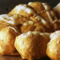 700 г соленого заварного теста с добавлением мускатного ореха 250 г мягкого сыра 25 г сливочного масла соль Срезать корку с сыра, порезать его тонкими ломтиками. Вмешать 200 г сыра в тесто. С помощью кондитерского мешка выложите на смазанный маслом противень в форме ромашки. Смазать взбитым яйцом и посыпать оставшимся сыром. Запекать 30 минут в духовке при 180°С. Когда пирог поднимется и зарумянится, он готов.