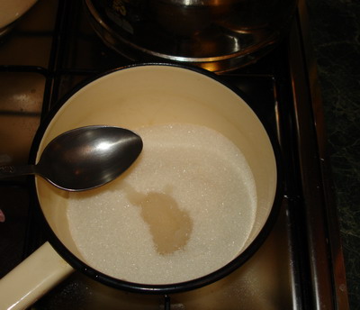 Из сахара и 2 ст. ложек воды приготовить сахарный сироп.