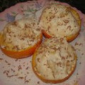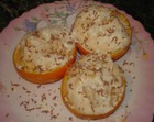 Апельсиновые половинки уложить в огнеупорное блюдо и наполнить полученной массой.