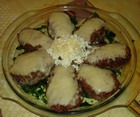 Затем все котлеты, кроме круглой, посыпать тертым сыром и поставить в духовку на несколько минут, чтобы расплавился сыр. Можно использовать микроволновую печь.
