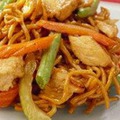 куриные окорочка (или соответствующее количество мяса) - 3 шт. капуста - 1 маленький кочан чеснок - 1 крупная головка яйца - 3 шт. соус корейский - 5-7 ст. ложек лук - 3-4 шт. морковь - 3 шт. соль по вкусу Окорочка освободить от костей, порезать кусочками, обжарить в растительном масле. Тем временем капусту нашинковать, а морковь натереть на терке длинными полосками. Яйца взбить миксером до пены. Полученную пену обжарить с обеих сторон до румяности и нарезать длинными узкими полосочками. Далее в уже готовую курицу добавить лук, порезанный полукольцами, и натертый на мелкой терке чеснок. Все это держится на огне еще 3 минуты. Теперь все уложить в большую посуду - капуста, морковь, яйца, курица с луком и чесноком, добавить корейский соус, красный перец, возможны другие приправы. Все тщательно перемешать и поставить под гнет с вечера до утра, чтобы салат пропитался соком. Подавать холодным.