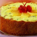 для теста: мука - 250 г маргарин - 140 г сахар - 100 г яйцо - 1 шт. сода - 1/3 ч. ложки для начинки: творог - 400 г изюм без косточек - 150 г сахар - 100 г яйца - 4 шт. фрукты консервированные - 200 г ванилин на кончике ножа Маргарин и сахар перемешать до исчезновения комков, постепенно добавить яйца, всыпать муку, смешанную с содой, перемешать. Тесто раскатать и выложить на дно разъемной формы. Яйца взбить с сахаром, добавить протертый через сито творог, изюм, ванилин, перемешать и выложить на тесто. Выпекать при 230 С в течение 20-25 минут. Охладить. Выложить на блюдо. Оформить торт консервированными фруктами.