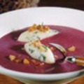200 г говядины 100 г ветчины 3 л воды по 1 корню моркови, петрушки и сельдерея 1 луковица для бульона 3 свеклы 200 г свежей капусты 1 ст. л. сливочного масла 8 горошин перца лавровый лист сметана соль, зелень Из говядины и ветчины с кореньями, луком и солью сварить бульон почти до готовности, процедить, а мясо нарезать порционными кусками. Свежую свеклу очистить и нарезать крупной соломкой, положить в кастрюльку, добавить нашинкованную капусту, луковицу и сливочное масло, влить немного бульона, слегка посолить и потушить под крышкой на слабом огне до мягкости. Положить в бульон нарезанное мясо, тушеные овощи, специи, варить до готовности при слабом кипении 30-40 минут. Влить для подцветки сок сырой красной свеклы и дать закипеть. Подавая, положить по вкусу сметану и посыпают рубленой зеленью.