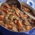 Мясо (0,5 кг) нарезать маленькими кусочками и 7 минут жарить на обычной плите в 2 ст. л. подсолнечного масла. Посолить, поперчить по вкусу. Морковь (100 г) натереть на крупной терке, 2 луковицы мелко нарезать. Всю эту смесь добавить к мясу и тушить еще минуты две. В 0,5 л воды добавить томат-пасту, соевый соус, лавровый лист, размешать, налить в мясо и дать закипеть. Добавить 1 ст. л. гречневого продела. Перемешать, закрыть крышкой и поставить в микроволновку. 10 минут - мощность 800, перемешать, затем еще 15 минут - мощность 450. Для микроволновки мощностью 600-650 Вт.