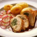 500 г филе индейки 1 сладкий красный перец 1 яйцо 100 г брынзы 2 ст. л. растительного масла 2 ст. л. сливочного масла или маргарина 4-8 маслин без косточек 2 ч. л. нарезанной зелени майорана 3 ст. л. панировочных сухарей соль, перец Надрезать филе индейки и подготовить фарш. Он представляет собой следующую смесь: хорошо перемешанная размятая брынза с мелко нарезанными маслинами и перцем. Далее мясо наполнить фаршем, закрепить тиками или с помощью зубочисток. После чего необходимо взбить яйцо, посолить, поперчить, смешать с зеленью и обвалять в нем мясо. Затем запанировать его сухарями. Полученный полуфабрикат обжарить на сковороде в сливочном и растительном масле, положить в духовку и тушить на несильном огне полчаса.