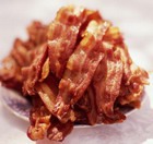 0,5 кг вырезки (или куриного филе) 2 яйца 2 ст. л. майонеза 2 ст. л. крахмала 1 луковица 2 зубчика чеснока соль, перец - по вкусу Мясо нарезать тонкими ломтиками произвольной длины. Затем взбить яйца, добавить майонез, крахмал, мелко порезать луковицу и чеснок, посолить, поперчить - по вкусу. В эту смесь уложить мясо, перемешать и оставить на 6-8 часов, чтобы пропиталось. Затем разогреть подсолнечное масло на сковороде и обжарить мясо с обеих сторон, как оладьи.