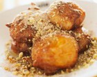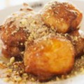 творог - 250 г яйца - 2 шт. 1/2 ч. ложки соды 1/2 ч. ложки соли 1/2 стакана песка мука Замесить мягкое тесто, чтоб отставало от рук, раскатать коржи толщиной 5 мм, вырезать рюмкой кружки. Растопить маргарин и жарить пончики в кастрюле, переворачивая почаще каждую штучку. В кастрюлю класть штук 5 или меньше. Следить, чтобы пончики не касались друг друга. Нужно, чтобы жир покрывал пончики. Иногда в ккастрюле пончики сами переворачиваются.